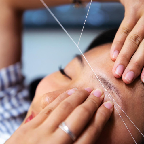 Perfectly shaped brows and smooth facial skin using gentle threading techniques. our gentle and precise threading services.